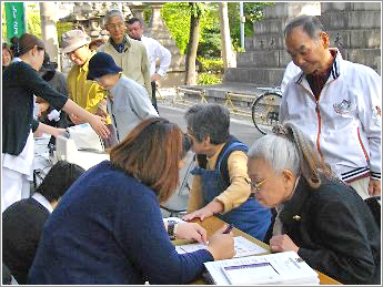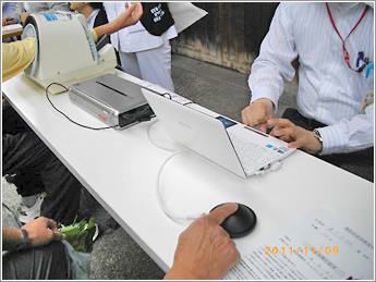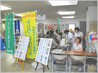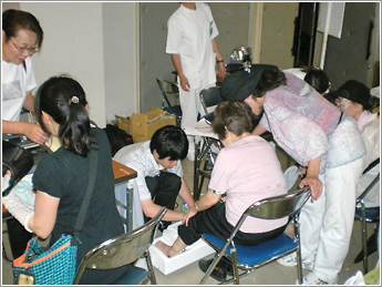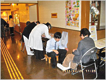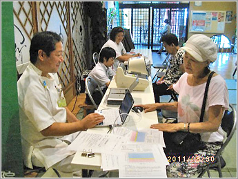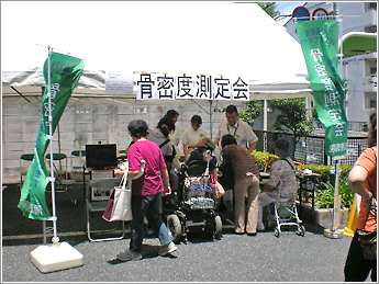 ⑰ 大阪市社会福祉協議会主催の夏祭りで骨密度の測定会風景です。