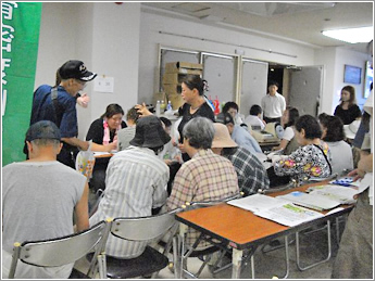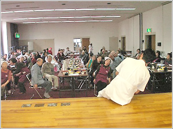 ④ 全体像。骨密度測定、栄養相談、毎日の食事のカロリー計算、心肺機能測定、基礎代謝測定、体脂肪測定、その他にも沢山の検査を無料で地域住民の方たちに行いました。