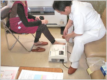 ⑫ 上記とは別の温泉で骨密度測定風景です。