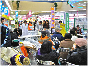 ③ 骨密度測定会のコーナーには常に20人以上の方が順番待ちの状態です。