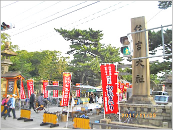 ⑨ 住吉大社の正面。初辰まいりの日の風景です。